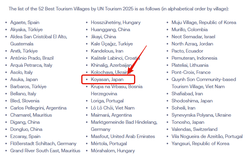 UN Tourismの公式サイトリリースにもしっかり掲載されていますね。今年は、日本からは、高野山を含む4地域(他地域は、奈良県明日香村、香川県土庄町、香川県小豆島町)が認定されました。合計で12地域となったそうです。